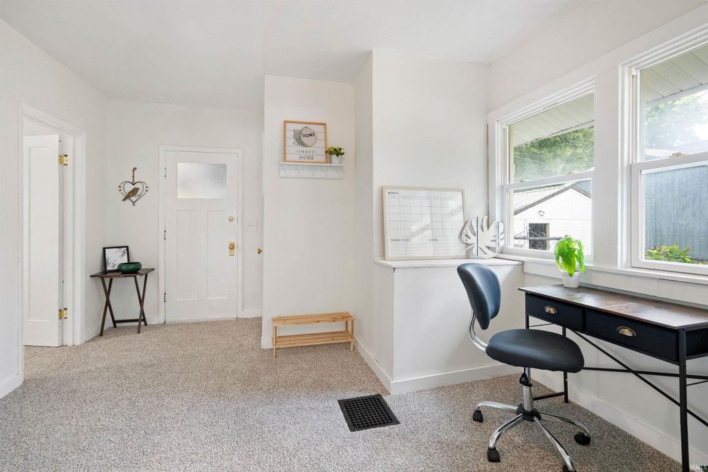 Welcome home to this charming 3-bedroom, 1-bath beauty that will capture your heart from the moment you arrive. The symmetrical exterior and darling front porch invite you to relax with your morning coffee or unwind with a good book. Step inside to an impressively spacious living area, perfect for cozy nights in or hosting gatherings. There's plenty of room to create a designated dining space, or enjoy casual meals in the kitchen. Two of the bedrooms are connected by a shared bathroom and a walk-in closet, offering a functional and flexible layout. The third bedroom is ideal for a home office but can easily serve as a guest room or additional sleeping space. You'll appreciate the convenience of main floor laundry and a large unfinished basement that provides ample storage.