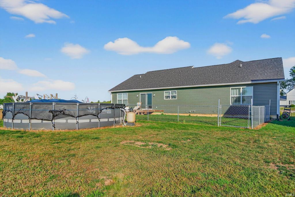 Exceptionally designed and newly constructed in 2022, this custom-built home in Caston School District leaves no detail overlooked. A welcoming covered front porch sets the tone before stepping into the open-concept living area. The custom kitchen is a showstopper with soft-close cabinetry, generous countertop space, a gas range, and an oversized walk-in pantry. From the dining area, enjoy breathtaking views of the backyard and stunning sunsets. The spacious primary suite offers a luxurious retreat with a double vanity, a walk-in shower, and an enormous walk-in closet. Two additional main-floor bedrooms provide comfort with large closets, while the mudroom off the garage entry conveniently includes the washer & dryer and storage closet. The basement has been framed and is ready to be finished with drywall and flooring. With a full bathroom already in place and an egress window, a fourth bedroom can easily be added. The wide stairway and 36-inch doorways add accessibility throughout. Quality construction includes 2x6 framing, foam insulation, and a 50-gallon quick recovery water heater. Extra outlets (approximately every 8 feet) add functionality throughout the home. Outside, you'll find two outbuildings with electric and LED lighting, a camper hookup with septic connection, an above-ground pool, and a partially fenced backyard. Well and septic were new in 2022. Natural gas-NIPSCO. Fiber offered through RTC. This property is a rare opportunity"”combining thoughtful design, modern efficiency, and incredible outdoor amenities.