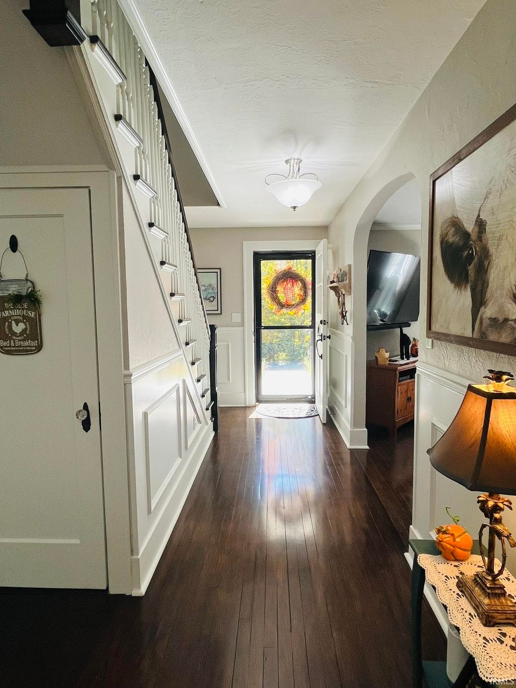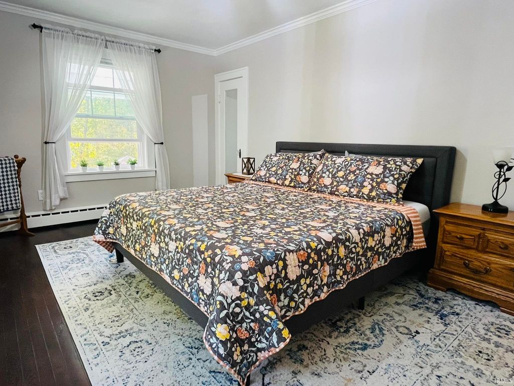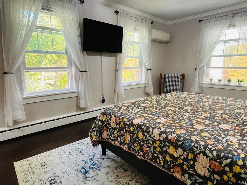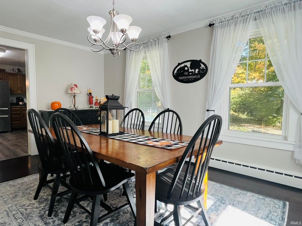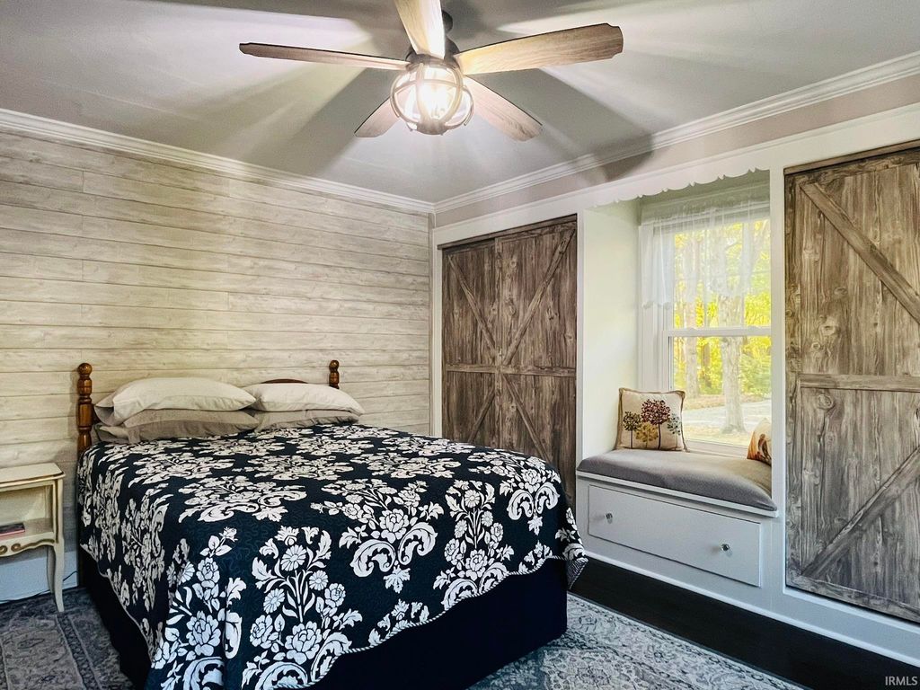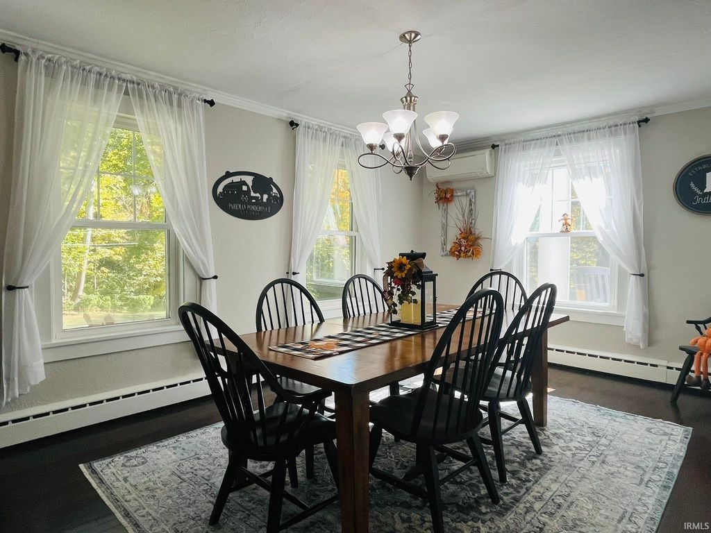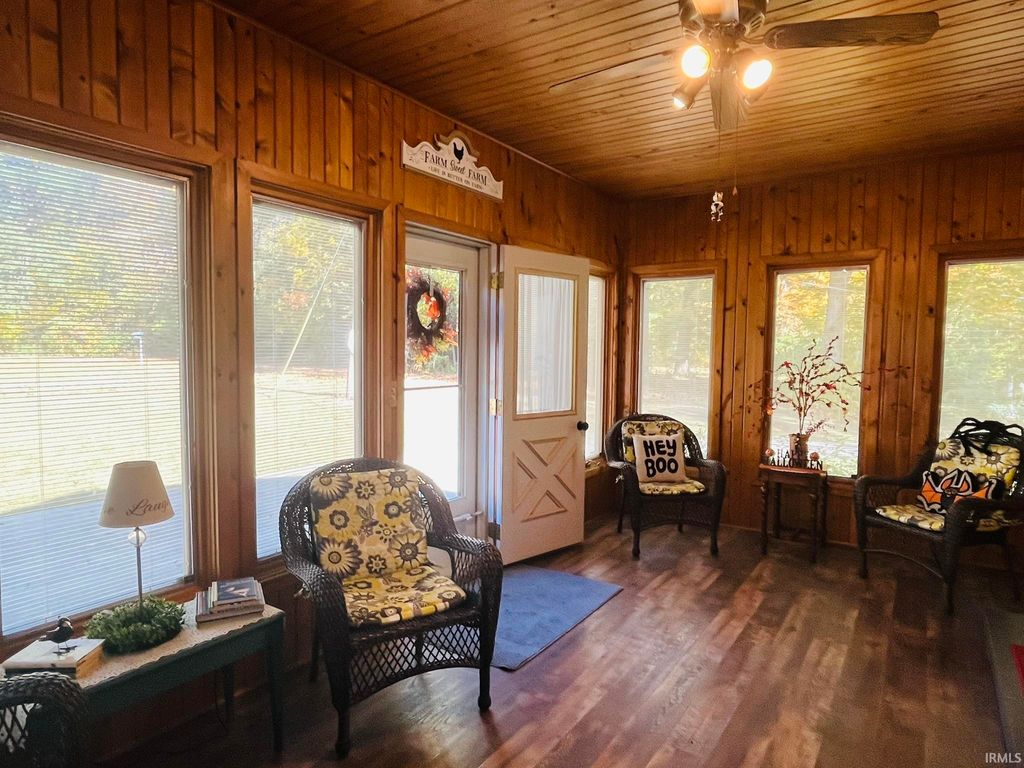 Bring your country living dreams to life with plenty of space for outdoor recreation and indoor coziness on almost 4 acres of privacy! The inside of the stately home is gleaming with refinished wood floors, crown molding, wainscoting, arched doorways, the original front door, and new paint throughout, and abundant natural light from vinyl replacement windows. 3 bedrooms, one on the main level, and 2 updated bathrooms with custom cabinetry. Large front porch with a 2nd-floor balcony; sunroom on the west side. Full appliance package, plus one extra refrigerator in basement. Clean, dry, and painted basement with perimeter drain and sump pump, plus one garage space. New PEX plumbing; new wiring through most of house; 200-amp service; pressure tank (2020); gas tankless water heater (2021); well (2020); high-efficiency gas boiler (2021); new sidewalk. Carport is a former horse barn with 4 parking spaces and a cigar room on the end. Pole building constructed in 2021. Large yard and lots of woods teeming with wildlife; campsite set up on the north side. Sale includes 2 parcels (52-08-11-300-006.000-015 and 52-08-14-200-003.000-015).