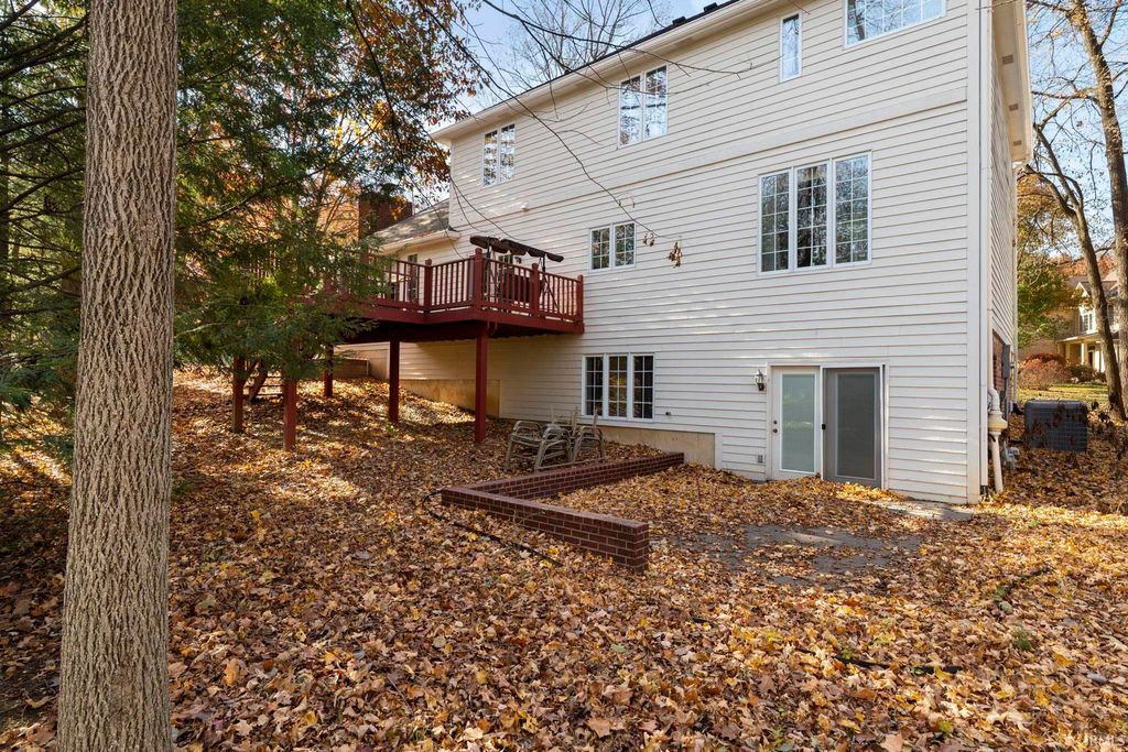703 Emerald Dr is located in Wildcat Valley Estates on the East side of Lafayette. This home sits on a corner lot surrounded by beautiful trees and a porch that greets you with an archway leading you right inside. Offering over 4,000 sq ft of space this property truly has room for it all whether it be large families hosting overnight guests, or anyone who loves to entertain. 703 Emerald Dr features 5 bedrooms, four and half bathrooms, an office, two spacious living rooms and a dining room. The finished basement adds even more versatility with a bar area, additional living room, and a game room. Just off the kitchen you can step onto the deck overlooking the backyard.