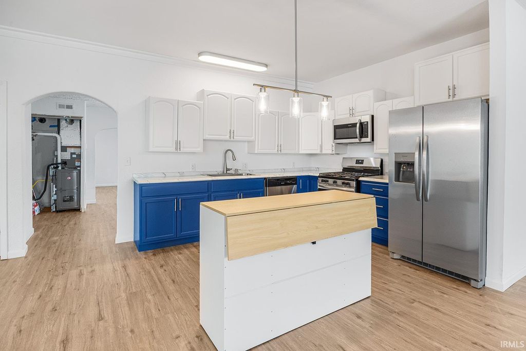 This updated 4-bedroom, 2.5-bath home offers a blend of fresh improvements and functional living space. The kitchen features all-new lower cabinets, refreshed uppers, new countertops, and new appliances. Throughout the home you'll find new LED lighting, new paint inside and out, and what appears to be new flooring on the main level. Major system updates include a new roof and new HVAC. The upper full bath has been updated with a new tub, toilet, vanity, faucets, vent, and lighting. The lower full bath is completely new, and the half bath includes a new vanity. With four bedrooms, multiple updated bathrooms, and a move-in-ready interior, this home offers excellent value in Kokomo.