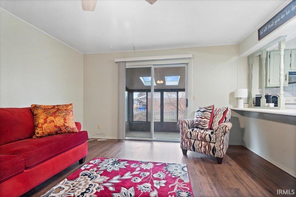 Welcome home to this charming ranch on a corner lot in a quiet cul-de-sac"”where convenience meets comfort! This 3 bedroom, 2 full bath home offers 1,409 sq ft of easy, one-level living with room to spread out thanks to two separate living areas, one featuring a cozy wood-burning brick fireplace. The light-filled sunroom wrapped in windows steals the show and offers the perfect space to relax or entertain year-round. The cutest kitchen delivers ample countertop space and flows into a separate dining area, making everyday living and hosting effortless. Enjoy outdoor living with a cute front porch, fenced backyard, and an extended driveway with abundant parking. The oversized garage is ideal for a workshop, hobbies, or extra storage. Major updates provide peace of mind, including a roof, A/C unit, and water heater"”approximately 5 years old, along with newer windows and carpet and LVP flooring updated within the last 5 years. Located close to the highway and just minutes from Kokomo shopping, dining, and amenities"”this home checks all the boxes. Cute, updated, and ready to impress!
