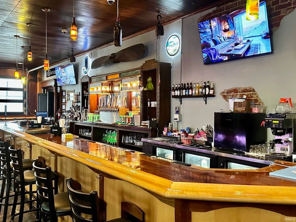 Turn-key business opportunity in an iconic Peru building, alongside the scenic Wabash River! Over the past few years, Riverside Grill & Lounge has been updated, repaired, and cleaned throughout. Features a glowing walnut and maple bar, and a garage door opening in the side for open-air weather. Eye-catching decorative elements throughout. Separate dining rooms ideal for corporate & private events. Private office space. 15 parking spaces including the rear parking lot and immediate street spaces. Separate HVAC for 1st & 2nd floors; laundry facilities on-site; mostly new plumbing; service stations for upstairs dining. Restrooms on both floors. Sale includes building, business, furnishings, inventory--everything needed for a seamless transition to the next right entrepreneur!