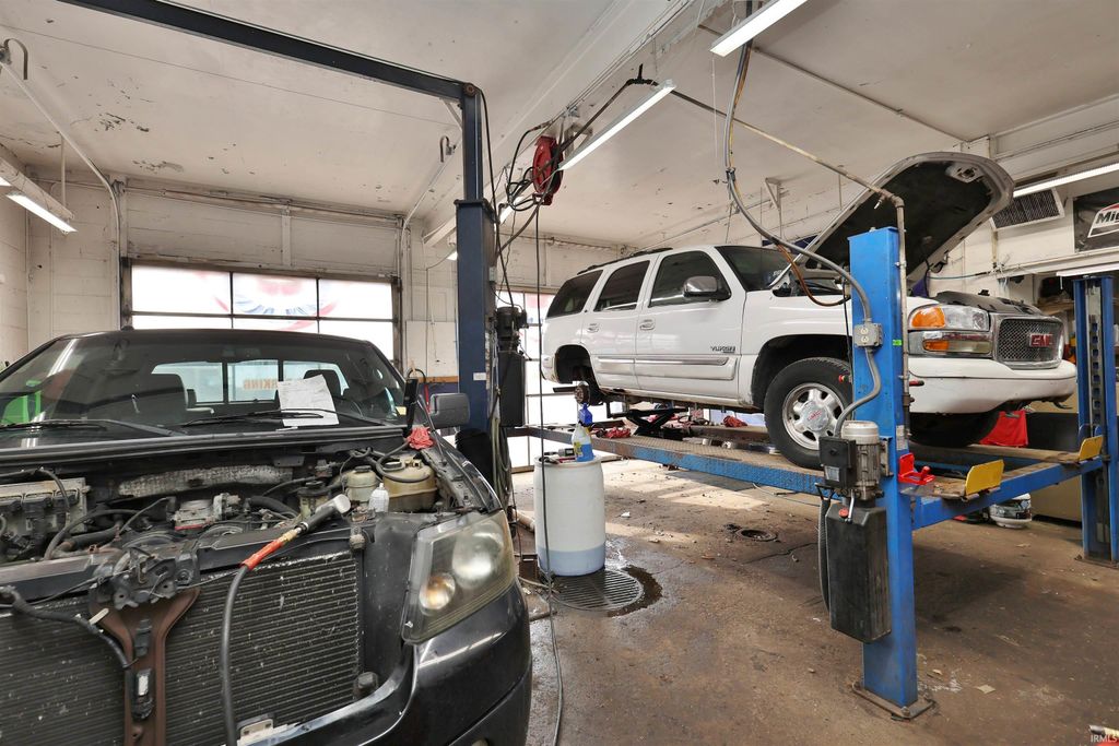 Successful automotive repair business available in the heart of Greentown. This property will come complete to start business the day of closing. Price will include two auto lifts, tire changer, wheel balancer, brake lathe, air compressor, parts washer, inventory, office furniture. Toolboxes and tools are personal property and will not remain. Seller has installed a brand-new oil forced air furnace, rebuilt both lifts, purchased brand new Hunter alignment machine. Lots of hard work and clean up has been completed here and is ready for its new owners to take over. The office area has wall a/c, nice reception/waiting area for customers, 1 bath, oversized corner lot with plenty of parking. 2 storage containers will remain.