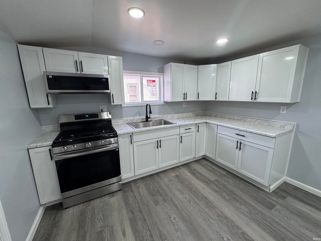 Beautifully updated/remodeled 2 bedroom, 2 bath home in Logansport featuring multiple updates throughout! Step inside to fresh paint, new flooring, updated lighting, and a bright open layout. The kitchen offers new cabinetry, countertops, and stainless steel appliances, flowing seamlessly into the spacious living area. Both bathrooms have been refreshed with modern finishes, and the basement provides additional storage or potential future living space. Outside you'll find a detached garage and a generous yard. Move-in ready and waiting for its next owner!