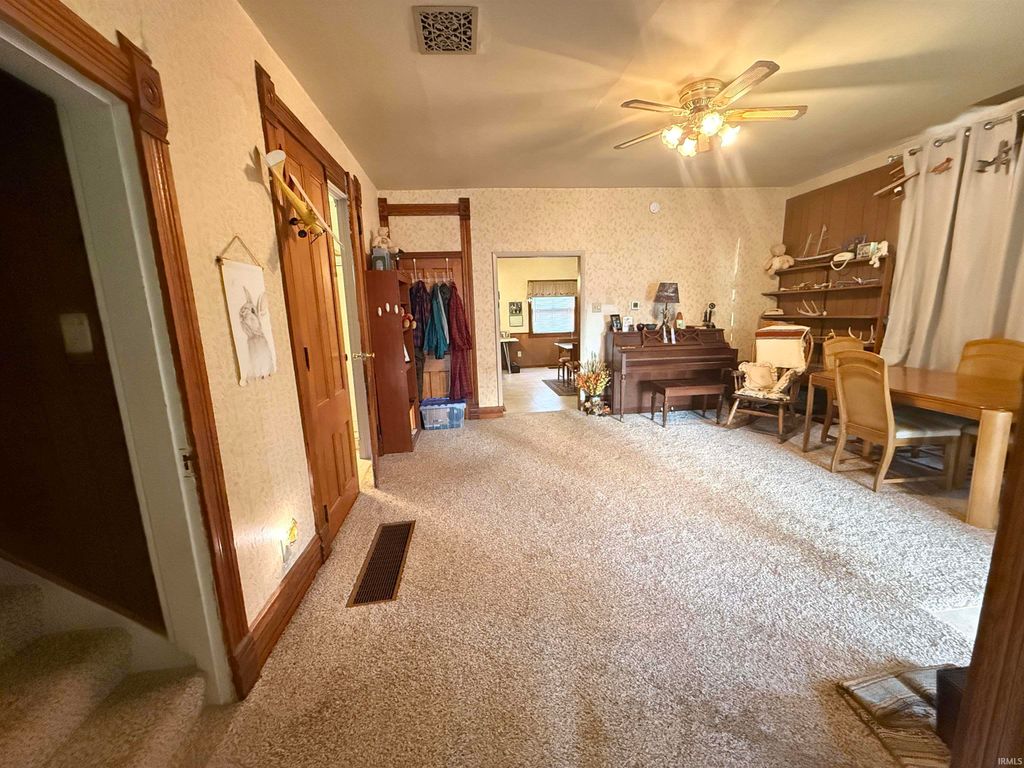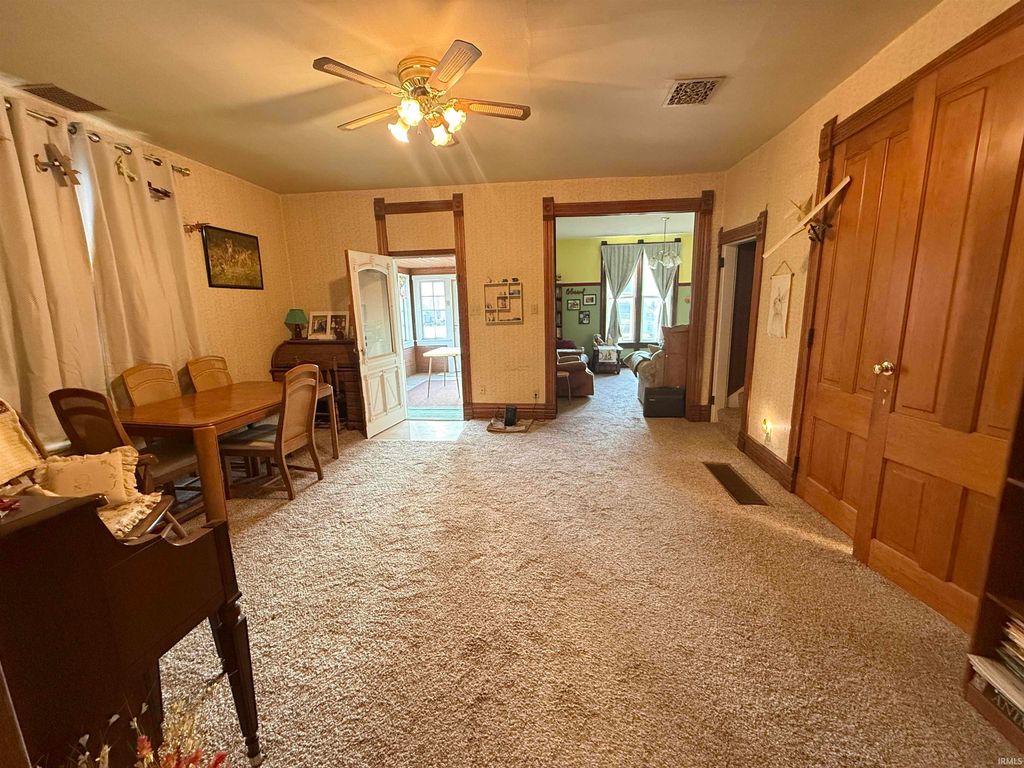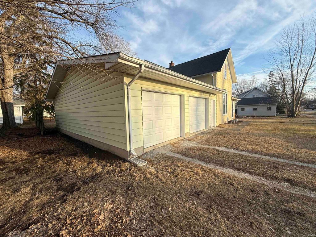 Charming 2-story home in Camden on a quiet street near parks and schools. Offers 1,690 SF, 3 bedrooms, and 1 bath on a .25-acre lot. Features 9.5-ft ceilings, natural woodwork, thick trim, and oversized wood doors. Spacious kitchen with stainless steel appliances opens to a large dining area. Bright living room with attached porch. Rare 4-car attached tandem garage provides excellent storage. Updates include new flooring and appliances (2016), new furnace (2017), newer AC, new water heater, updated electrical with new panel, and new sump pump. Easy access to Hoosier Heartland Hwy; approx. 35 min to Lafayette or Kokomo and under 15 min to Delphi.