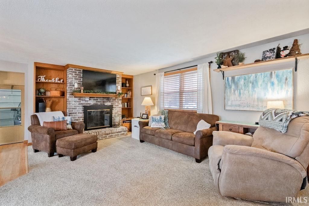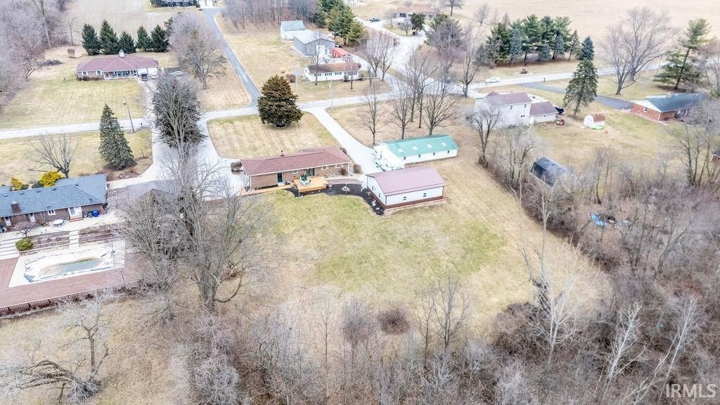 This home is situated on 3 beautiful acres, and offers the best of both comfort and functionality with 3 bedrooms and 2 full baths! The open floorplan has a spacious living room with a brick gas log fireplace, dining area, and kitchen complete with an island and all appliances included. The full basement provides incredible potential for additional living space, storage, or recreation. And don't forget about the attached two-car garage for the Indiana weather! However, outside is where this property truly shines. Enjoy two pole barns, new gravel, a well-maintained and thoughtful exterior, and a peaceful creek and wooded area running along the back of the property. With championship park behind the acreage and just minutes from town, this location is a dream. It's the perfect balance of privacy and convenience!