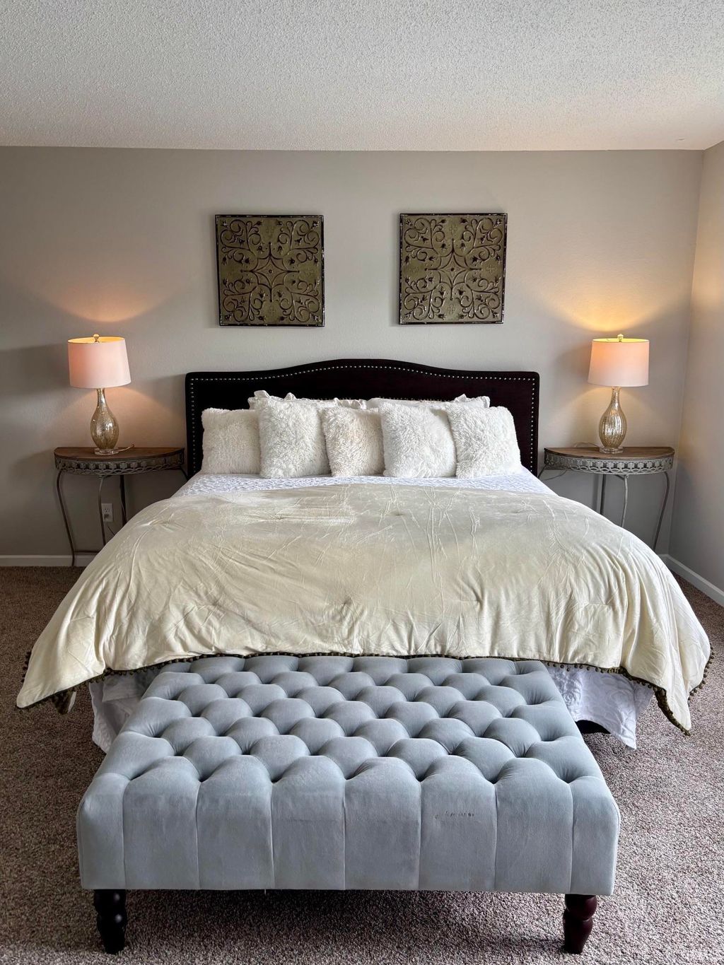 Remodeled beautifully. Countless updates throughout the property including all new luxury vinyl wide plank flooring, new carpet. All new painting throughout, walls, ceiling, trim and doors. Complete new kitchen, new kitchen cabinets, new kitchen countertops, new subway tiled backsplash, new stainless appliances. All new light fixtures. All new electrical switches and outlets. Updated all 2 1/2 bathrooms. Property offers great yard with a courtyard feel, cozy patio with fire pit, landscaped, 8x10 shed. Fresh new look to the front exterior. This property is move in ready!