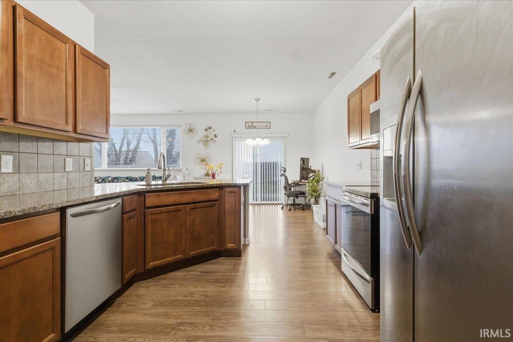 This delightful home features an open floor plan with three bedrooms and two full baths, including a spacious primary suite. The kitchen showcases lovely cabinets, granite countertops, an attractive tile backsplash, and modern stainless-steel appliances. Completing the package is a handy Maytag washer and dryer set for your convenience. You can have peace of mind knowing that the mechanical systems, appliances, and roof are all in excellent shape, as this two-owner home is just eight years old! Spend those warm summer days in your fully fenced backyard, relaxing under the covered patio. Don't miss the chance to relocate out to the Thriving Southside Community! Schedule your tour through Showing Time Today!