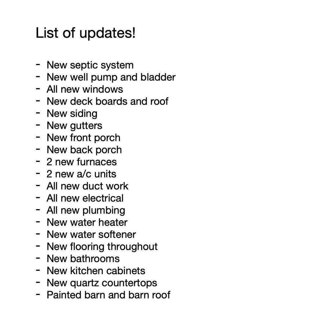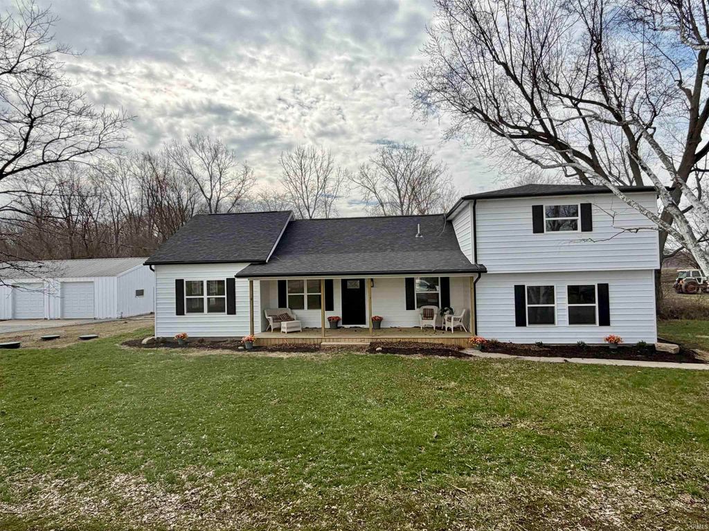 Stunning 3,104 Sq. ft. 3-Bedroom, 2.5-Bathroom Modern Farmhouse on .82 acres. Convenient to Peru, Kokomo, Wabash or Marion. This completely renovated home offers 3 spacious bedrooms, an office, 2.5 baths, and plenty of living space, including two large living areas and a bonus room upstairs. The master suite is on the main level with an ensuite bath and walk-in closet. Upstairs, you'll find two oversized bedrooms and an office. Custom tile work throughout. Updates include all new electrical, all new plumbing, brand new appliances, all new windows, two new furnaces, two new A/C units, a new septic system, new well pump and bladder tank, and a new roof. Plus, a 30x48 detached garage/pole barn, also with new electrical, completes the property.