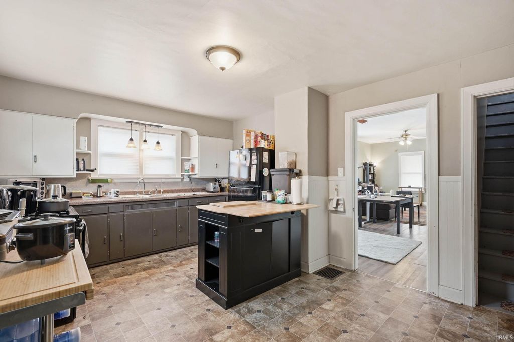 Situated at 68 W 7th St in Peru, Indiana, this property offers a unique opportunity with two city lots totaling 10,584 sq ft. The additional 5,040 sq ft vacant lot provides flexibility-whether you envision expanding outdoor space, building a garage or workshop, or even constructing a second home. The existing residence features thoughtful exterior touches, including front and side planter boxes that enhance curb appeal while complementing the adjacent open lot. A detached garage and dog kennel add practical value to the property. Inside, the home has been updated with care. The kitchen stands out with its gourmet feel, complete with an island, stainless steel prep table, and a new refrigerator. New blinds have been installed throughout, along with tasteful upgrades that reflect attention to detail. The main floor includes a laundry room and an improved full bathroom for added convenience. Upstairs, the primary bedroom offers a comfortable retreat. Just outside, a versatile loft space can serve as a playroom, study, library, or home office-adaptable to your needs. With its combination of move-in-ready features and additional land for future possibilities, this property presents both immediate comfort and long-term potential.