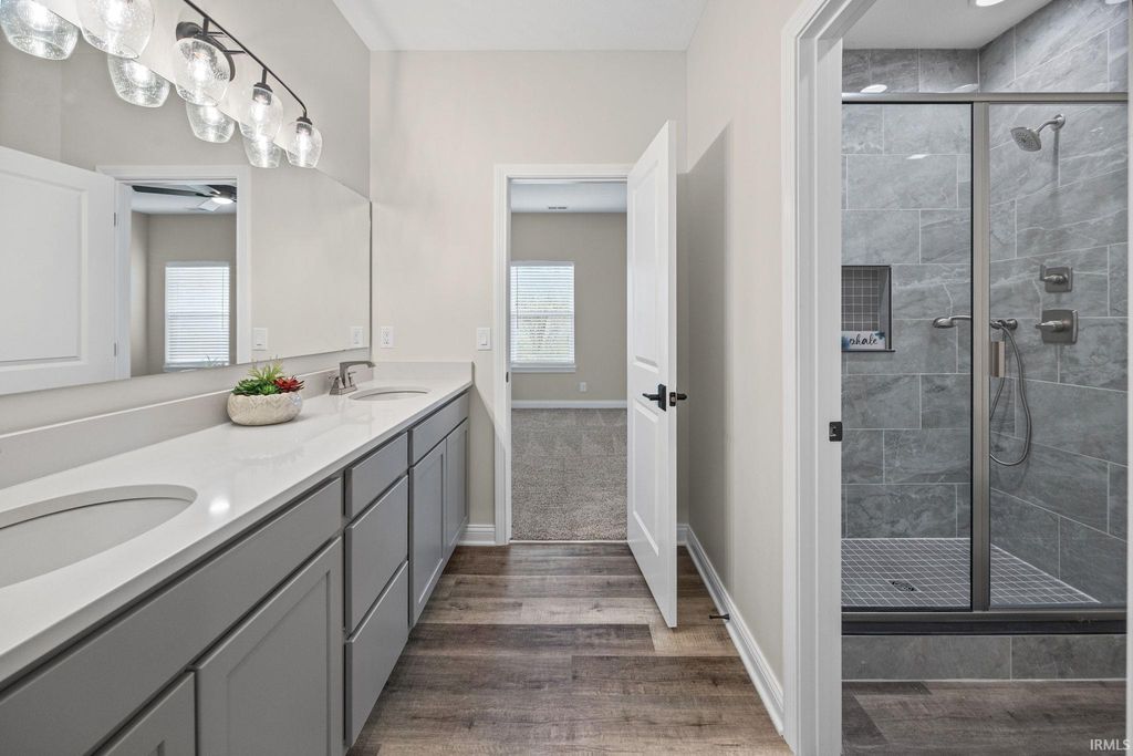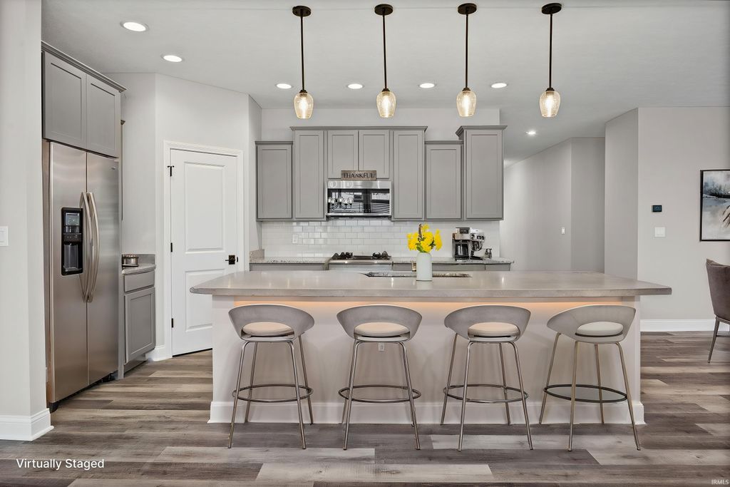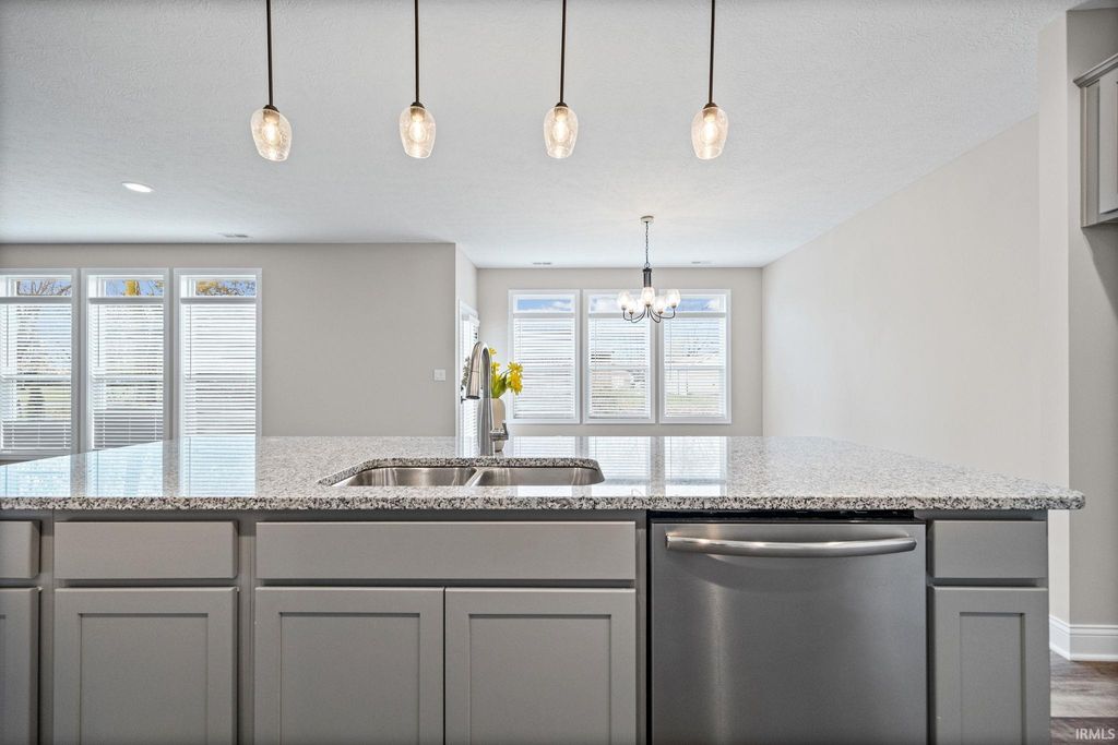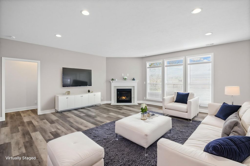 Welcome Home at last! **ALL-NEW construction in Barrington Woods! Nestled on a quiet cul-de-sac with wooded views, this stunning home offers high-end finishes, a sprawling great room with gas fireplace, and a chef's kitchen designed to impress.** This beautifully crafted home features 3 bedrooms and 2 full baths with an open-concept layout ideal for both everyday living and entertaining. A welcoming foyer entry leads into the spacious great room, creating a warm and inviting central living space. The kitchen is a true standout with Chef grade stainless steel appliances, a gas range, custom cabinetry with crown molding and soft-close drawers and cabinetry, granite countertops, a large center island, and a walk-in pantry. The primary suite offers a private retreat with a spacious bedroom and a spa-inspired bath featuring a custom tile walk-in shower, dual vanities, and a custom California Closet system. Additional features include 9-foot ceilings, luxury vinyl plank flooring, a dedicated laundry room with cabinetry, and a mudroom with built-in bench. Enjoy outdoor living with a 14' x 14' open patio overlooking a peaceful wooded setting. Landscaping allowance for the backyard is negotiable with the seller/builder. Exterior highlights include a stone façade, and a custom front door. The home also offers high-efficiency mechanicals, energy-saving features, a 3-car garage, and a builder's warranty. Conveniently located near top-rated schools, restaurants, hospitals, and easy access to I-65. Don't miss the chance to make this where your new story can begin!