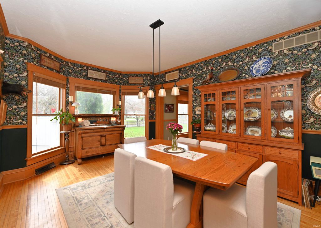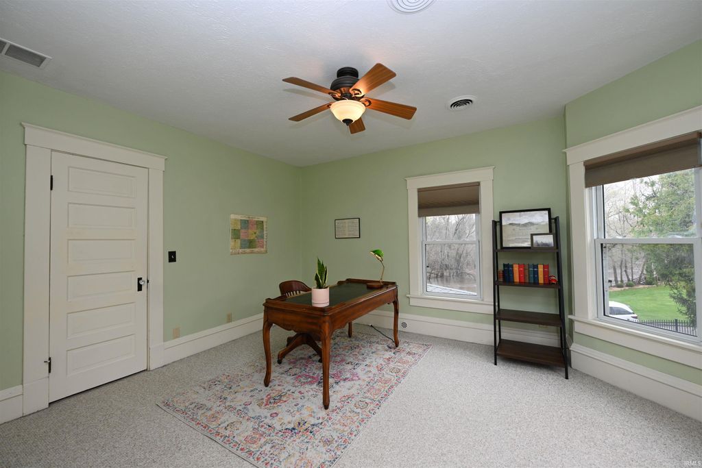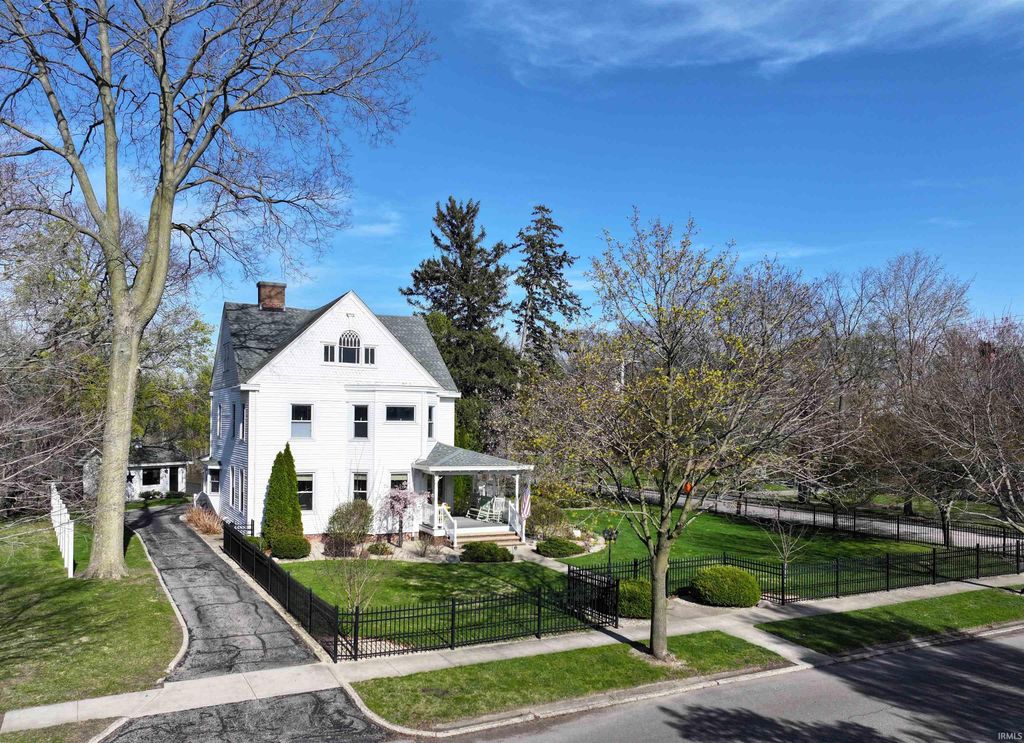Nestled along the Tippecanoe River in Winamac, IN, this delightful Queen Anne Victorian home exudes timeless elegance. The interior boasts tall ceilings, hardwood floors, ornate woodwork, and a grand staircase. Equally stunning, the exterior features a fenced-in yard, a covered front porch perfect for resting in a rocking chair, a patio with a gas fire pit, built-in seating, and a hot tub for relaxation. You can also unwind in the "boathouse studio" or riverside cabin while enjoying serene river views. Conveniently located in the heart of Winamac, this home is close to the school, library, town park, and downtown restaurants. The upper level includes a spacious primary suite with a tiled walk-in shower and laundry area, two additional bedrooms, and a third-floor attic that awaits your creative touch to transform it into your dream room. On the main floor, the home features an updated kitchen with granite countertops and stainless-steel appliances, a large living room with a river view, a butler's pantry, a formal dining room, and a formal living room with built-in bookcases and an ornamental fireplace. The unfinished basement has a workbench, plenty of storage space, and a 10 x 43 garage. This home is a perfect mix of modern amenities, timeless charm, and a river enthusiast's dream come true!