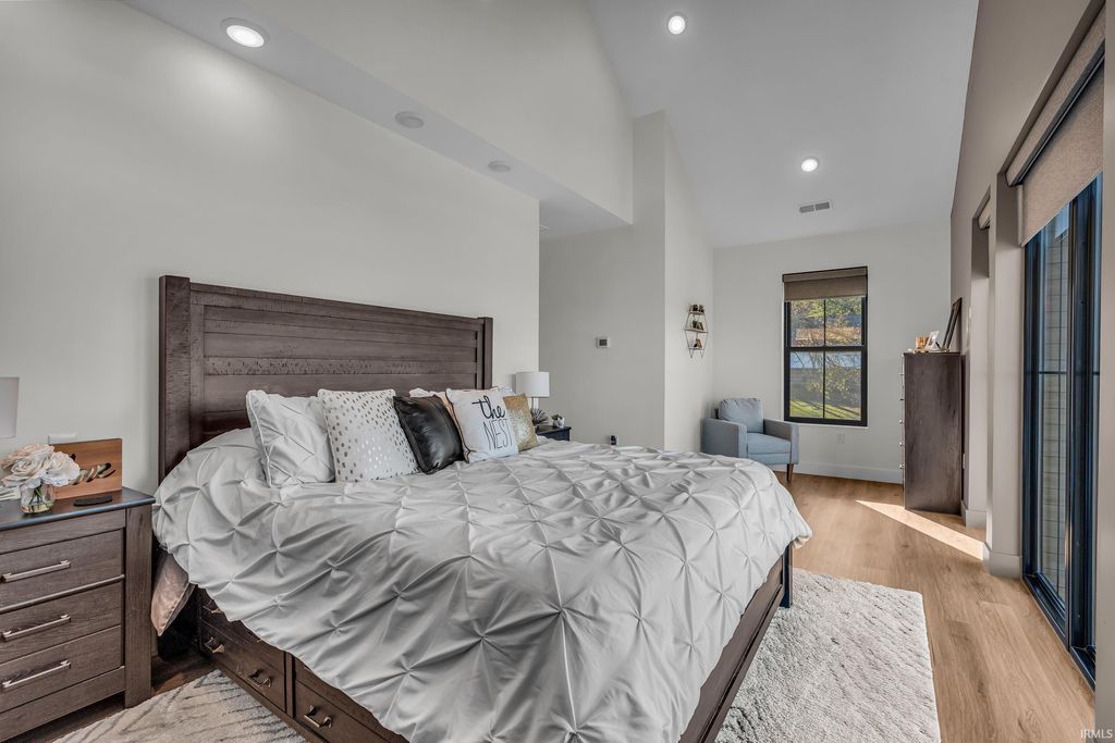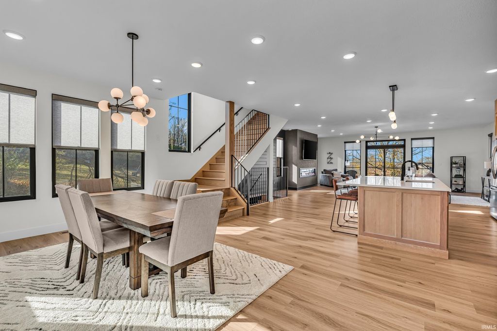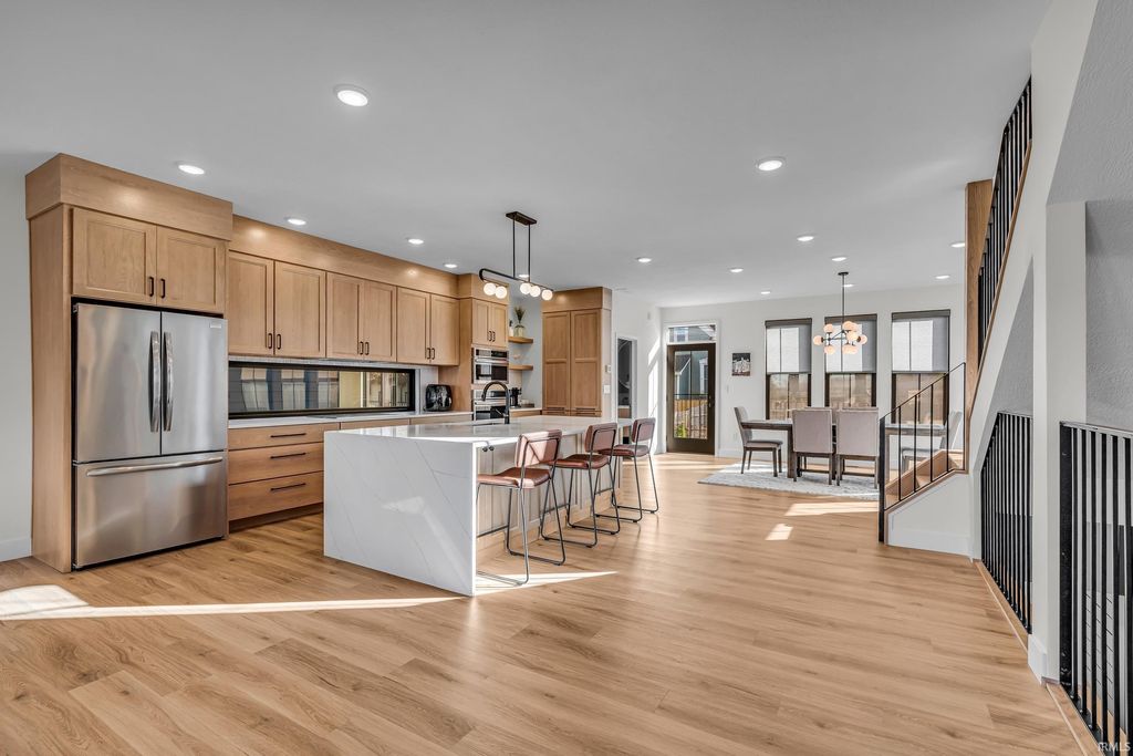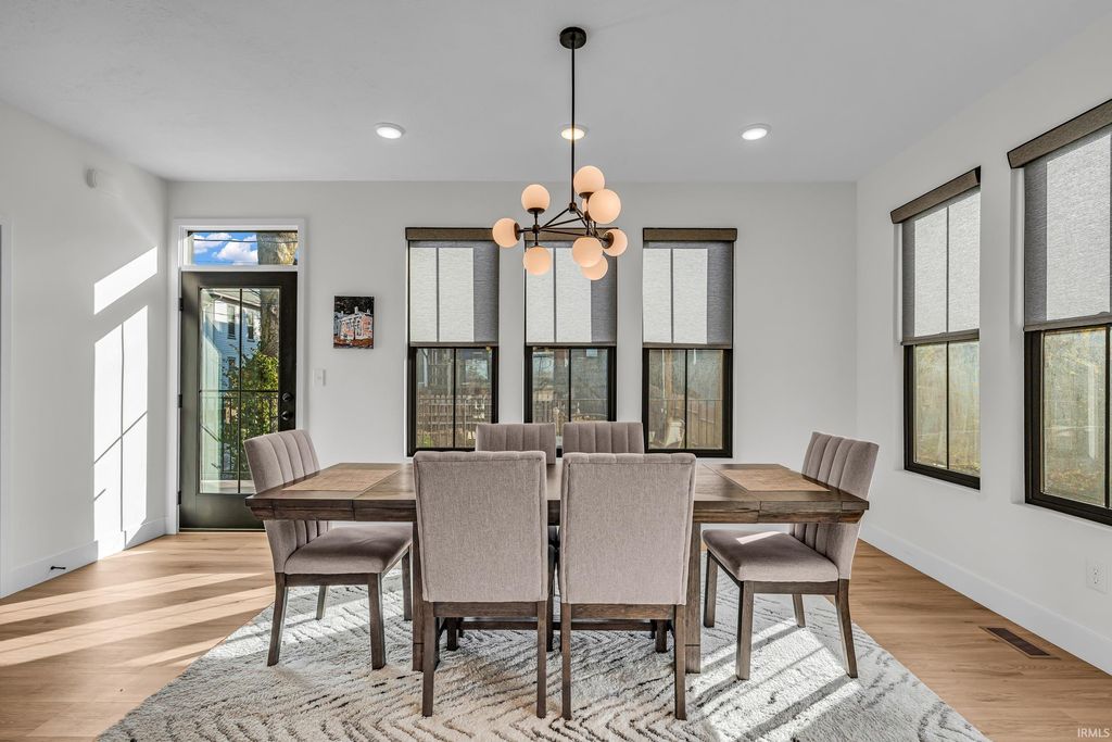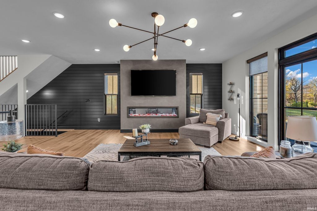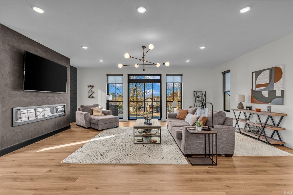 Welcome to 289 South 8th Street, a stunning modern home in the heart of downtown Lafayette. Built in 2023 by Steve Schrader Homes, this 3-story, 2,736 sq ft residence blends luxury design with urban convenience - just two blocks from Main Street's shops, restaurants, and easy commute to Purdue University. Inside, sunlight pours through oversized windows, highlighting the open-concept layout, hardwood floors, and high-end finishes. The gourmet kitchen features a massive waterfall-edge island, quartz countertops, custom white-oak cabinetry, and designer fixtures. The spacious living area centers around a sleek linear fireplace and opens to a 23 foot glass-railed balcony with downtown views - perfect for relaxing or entertaining. Upstairs, the vaulted owner's suite feels like a retreat, offering a custom walk-in closet and a spa-inspired bath with quartz double vanity, walk-in shower, and warm gold accents. Two additional bedrooms, a flexible first-floor space, and three and a half baths provide comfort and versatility. An attached 2 car garage, rear deck, updated landscaping and thoughtful craftmanship throughout complete this one-of-a-kind home. A must see!