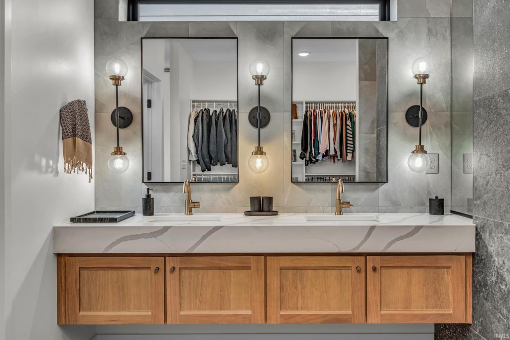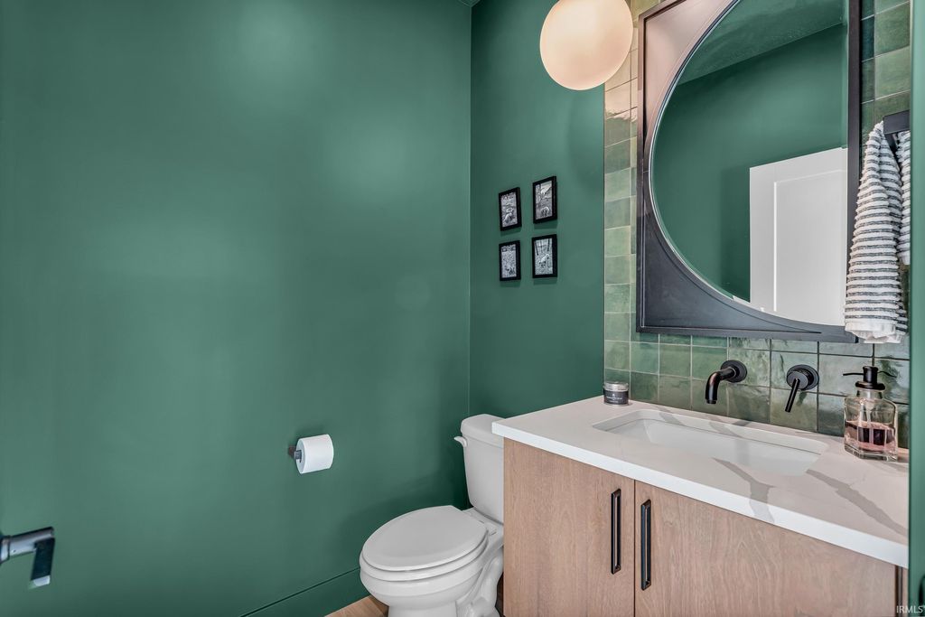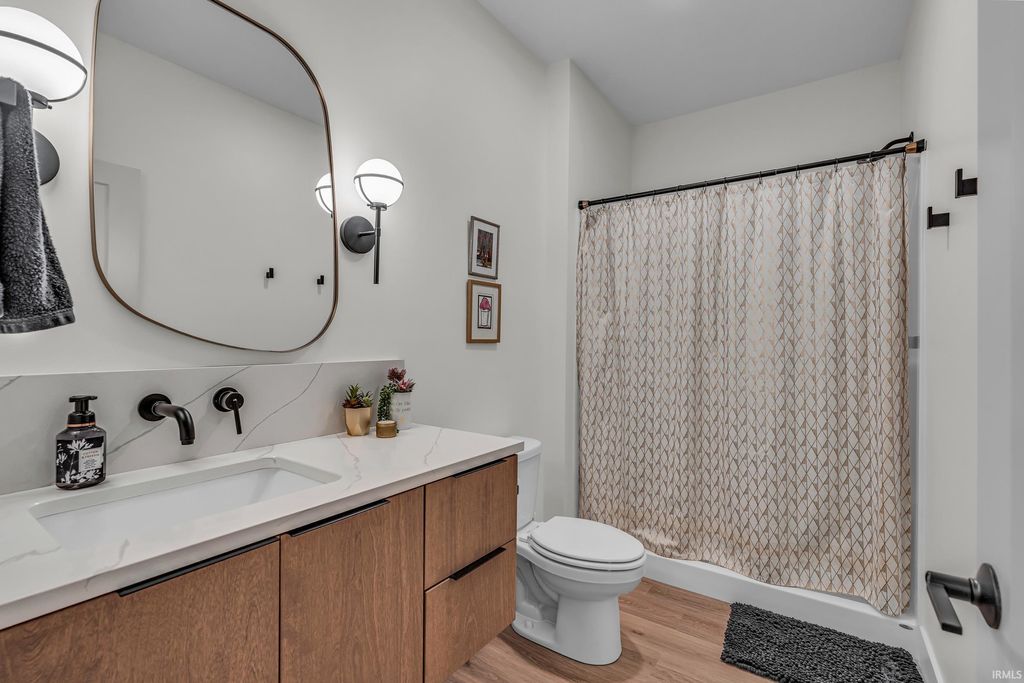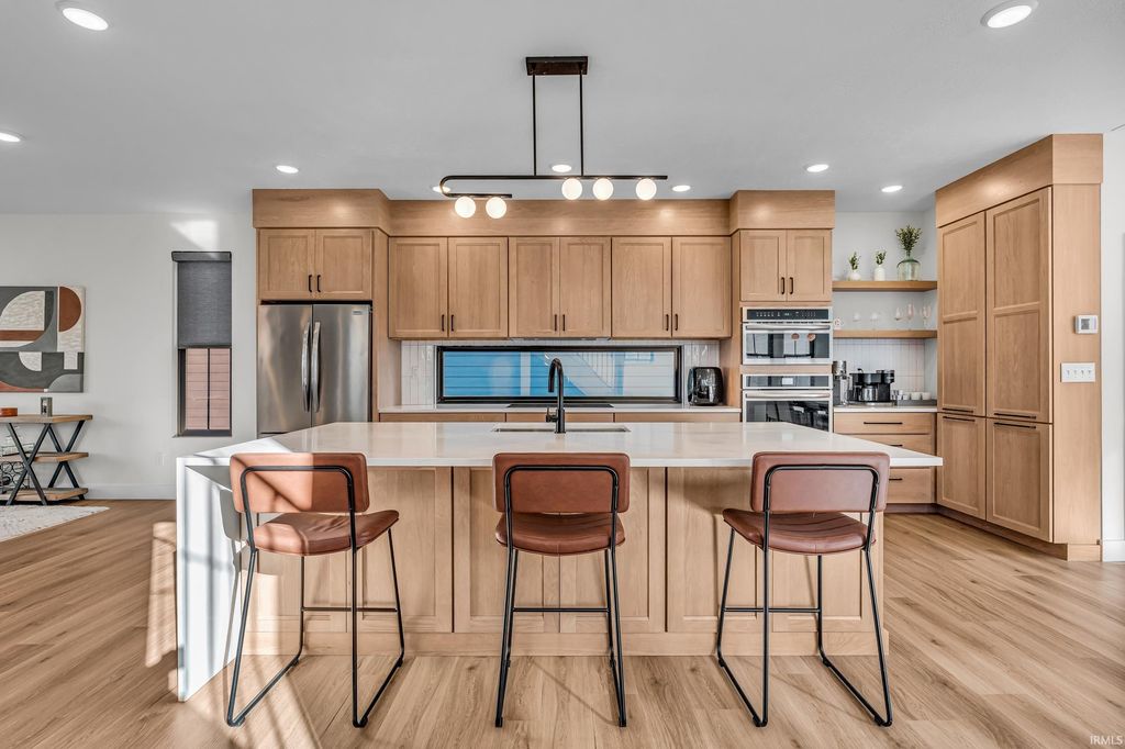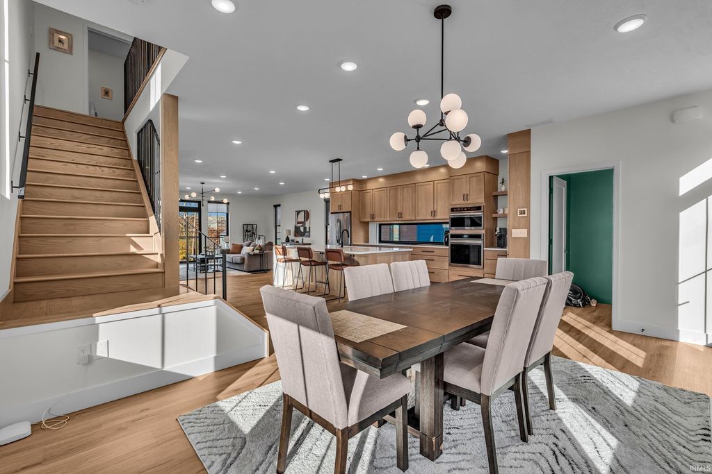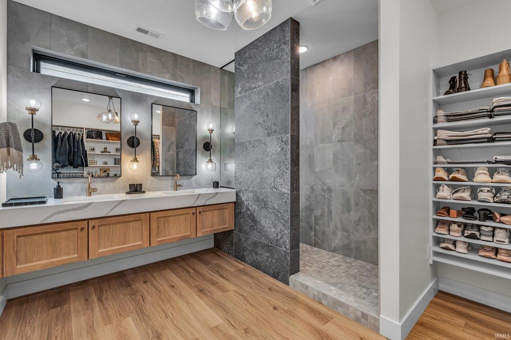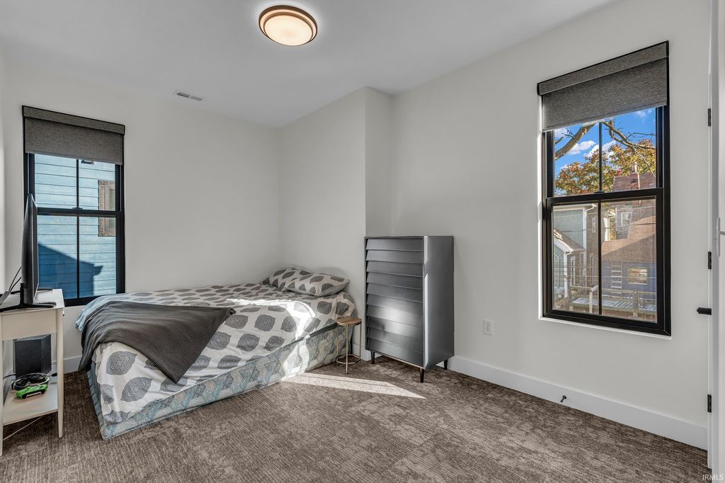Welcome to 289 South 8th Street, a stunning modern home in the heart of downtown Lafayette. Built in 2023 by Steve Schrader Homes, this 3-story, 2,736 sq ft residence blends luxury design with urban convenience - just two blocks from Main Street's shops, restaurants, and easy commute to Purdue University. Inside, sunlight pours through oversized windows, highlighting the open-concept layout, hardwood floors, and high-end finishes. The gourmet kitchen features a massive waterfall-edge island, quartz countertops, custom white-oak cabinetry, and designer fixtures. The spacious living area centers around a sleek linear fireplace and opens to a 23 foot glass-railed balcony with downtown views - perfect for relaxing or entertaining. Upstairs, the vaulted owner's suite feels like a retreat, offering a custom walk-in closet and a spa-inspired bath with quartz double vanity, walk-in shower, and warm gold accents. Two additional bedrooms, a flexible first-floor space, and three and a half baths provide comfort and versatility. An attached 2 car garage, rear deck, updated landscaping and thoughtful craftmanship throughout complete this one-of-a-kind home. A must see!