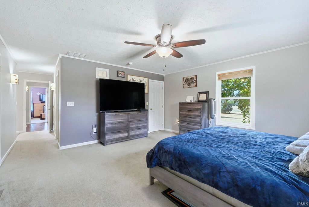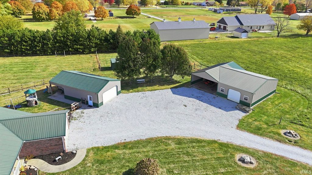 Escape to your own private retreat on 9.5 acres of Indiana countryside! 3-bedroom, 2-bath brick ranch plus two large barns include a 50-amp RV hookup! Over 2,000 square feet of open-concept living space welcomes you with vaulted ceilings, beautiful nailed-down wood floors installed in 2019, a four-seasons room, and a spacious primary suite with direct access to the back deck. The home also features newer stainless steel appliances, gas lines run to the house in 2020, and a new gas HVAC system installed in September 2021 with a transferable 10-year warranty. The gravel drive and expanded parking area were also completed in 2021, adding to the property's functionality and curb appeal. Enjoy quiet mornings on the covered front porch, evenings around the fire pit, and endless outdoor possibilities across the expansive property. The large detached workshop and barn provide excellent space for hobbies, storage, or recreational use, complete with updated lighting, new barn doors added in 2021 and an on-site shooting berm. Located in the desirable Western School District, this is one to check out right away!