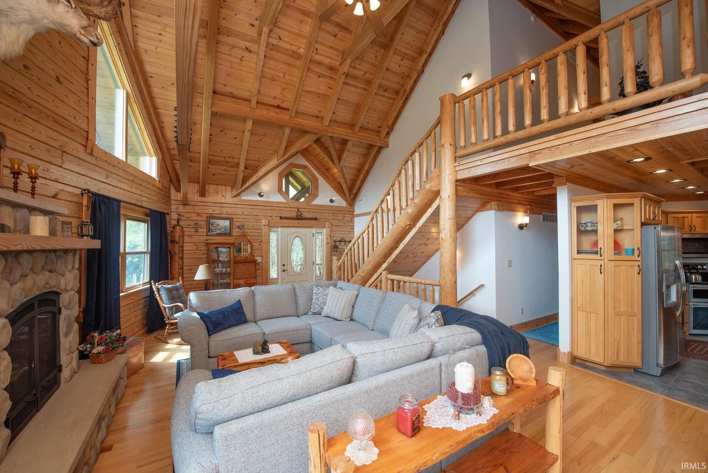 Set on approximately 2.7 acres of serene, tree-lined privacy, this exceptional property features a custom Tennessee-timber log home paired with a 25x30 pole barn"”truly a one-of-a-kind offering. Step through the front door and you're welcomed by soaring vaulted ceilings that immediately showcase the home's craftsmanship. The grand living room is anchored by a gas fireplace and rich hardwood floors, creating a warm and inviting gathering space. The kitchen features solid hickory cabinetry, stainless steel appliances, and opens to a charming dining area surrounded by windows that frame peaceful views of nature and wildlife. Just off the kitchen, a spacious deck provides the perfect spot for morning coffee, birdwatching, or entertaining guests. This home offers 4 bedrooms and 2.5 bathrooms, including a first floor owner's suite with a walk-in closet. The main floor also includes a convenient laundry room and additional storage just off the finished 2-car garage. Structural highlights include steel I-beams and 200-amp service. The unfinished walk-out basement, with 9-foot ceilings and plumbing already in place for a future bathroom, offers the potential to expand the home to more than 4,300 total finished square feet. Outdoors, the property continues to impress with a U-shaped driveway, firepit area ready for gatherings, and the additional 25x30 pole barn for storage, hobbies, or equipment. More acreage may be available for purchase. A rare blend of privacy, craftsmanship, and potential"”this property is ready to welcome its next owner.