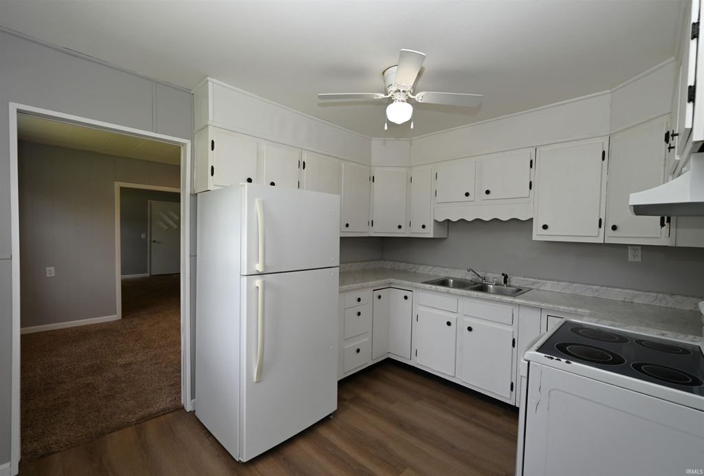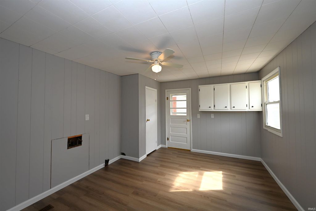 This delightful one-story residence provides all the essentials on the main level, featuring a living room, dining room, laundry area, and 2-3 bedrooms. It comes with a detached two-car garage, a paved driveway, and extra parking behind the home, and a partial basement. Recent upgrades include a new metal roof for both the house and garage, a fresh coat of paint, and vinyl flooring in the kitchen, laundry space, and bathroom. FHA, VA, and USDA loans are welcomed!
