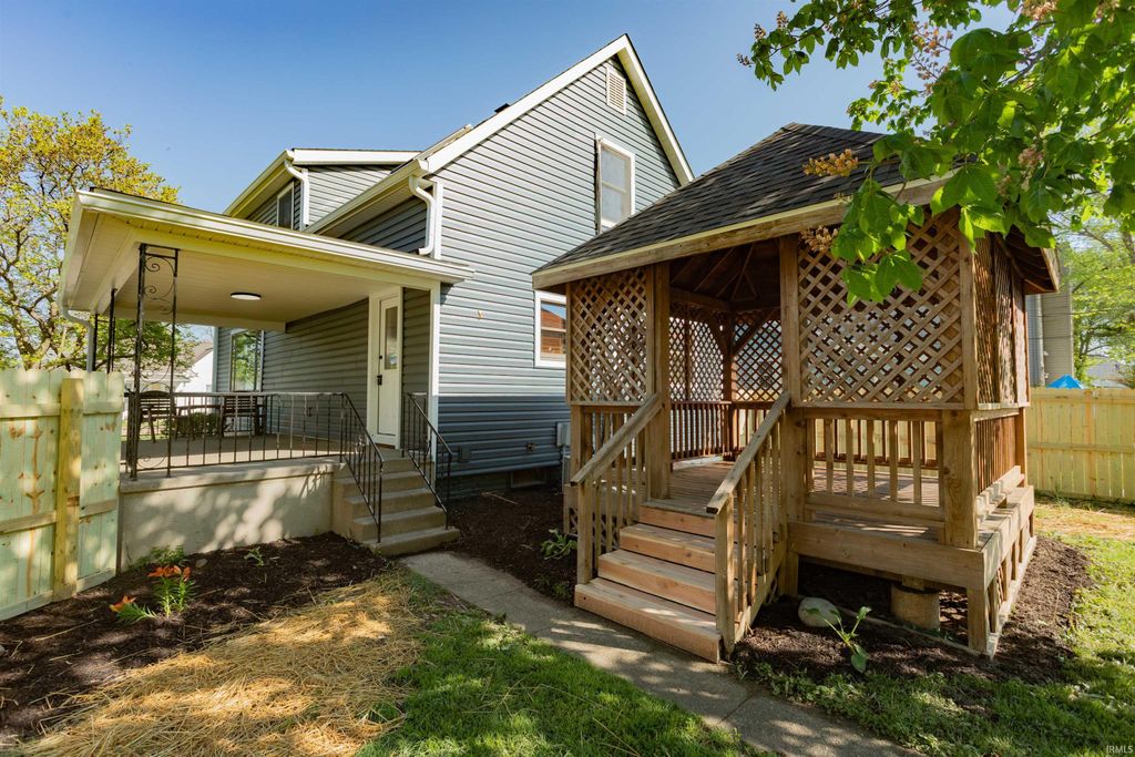 Completely reimagined Lafayette home "” move in and enjoy. New roof on house, garage, and gazebo. New electrical panel, siding, and skylights. Both full baths gutted and rebuilt with tile showers, new flooring, and fixtures. Brand-new kitchen with cabinets, countertops, tile backsplash, and appliances. New vinyl plank flooring on the main level, original wood floors upstairs. Main level full bath, two bedrooms and second full bath up, basement for mechanicals, laundry & storage. Outside: covered porch, new wooden privacy fence, gazebo, and detached 2-car garage with new opener. Steps from Columbian Park and minutes to downtown Lafayette dining. Turnkey "” nothing left to do.