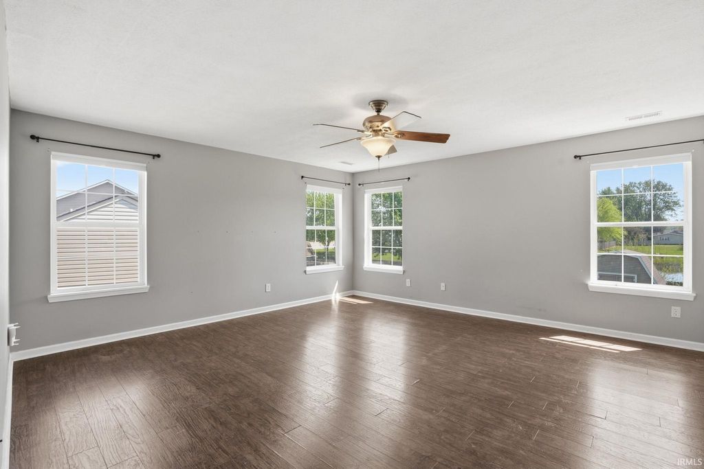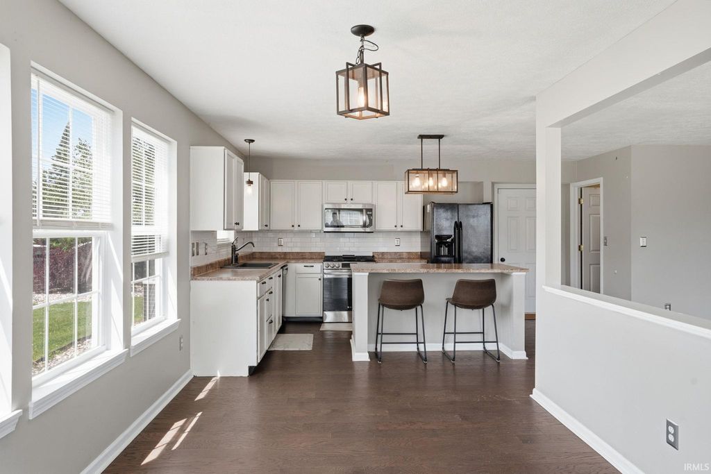 Beautifully designed and move in ready, this spacious 4 bedroom, 2.5 bath home offers over 2,400 square feet of well appointed living space with a layout that truly works for everyday life. The open concept main level is both inviting and functional, centered around a cozy wood-burning fireplace and seamlessly connected to the kitchen which features a large island, stainless steel appliances, and an impressive walk-in pantry. Just off the kitchen, a light filled dining space or sunroom offers the perfect setting for everyday meals or relaxing with views of the backyard, thanks to an abundance of windows that bring in natural light. A main level office or flex room provides the ideal space for working from home, a playroom, or additional living space. Upstairs, you'll find all four bedrooms, including a generously sized primary suite complete with dual walk-in closets and a private ensuite bath. A conveniently located second floor laundry room and two full bathrooms add to the home's thoughtful design. Situated on a large lot with peaceful pond views just beyond the fenced backyard, this home offers both space and a serene setting while still being close to everything Kokomo has to offer.